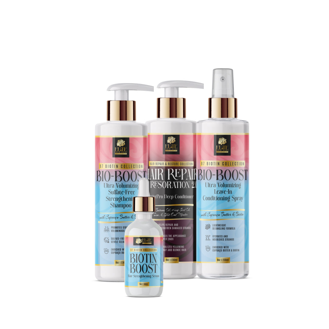 1. Bio-Boost Shampoo – Use bi-weekly to gently cleanse and remove buildup while boosting volume and scalp health.